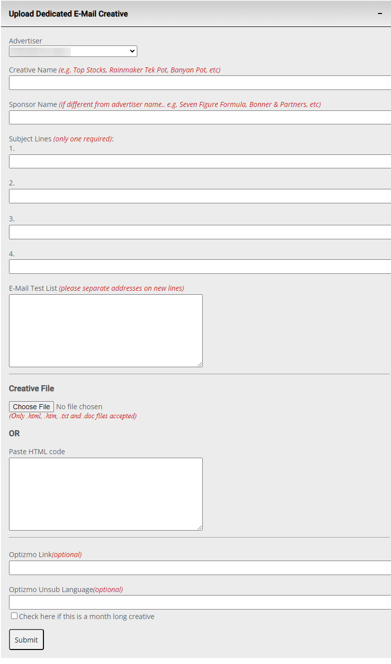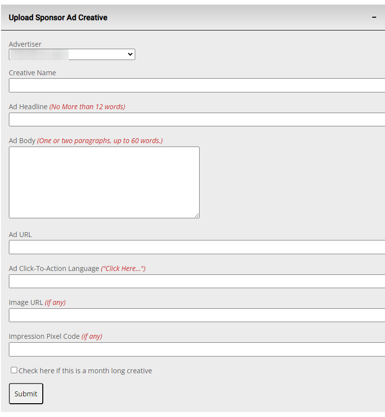 The original sponsor upload form featured mismatched elements and an unclear submission button: