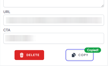 Consequently, I remade the form to include a delete button and to provide feedback upon clicking the ‘Copied’ button.